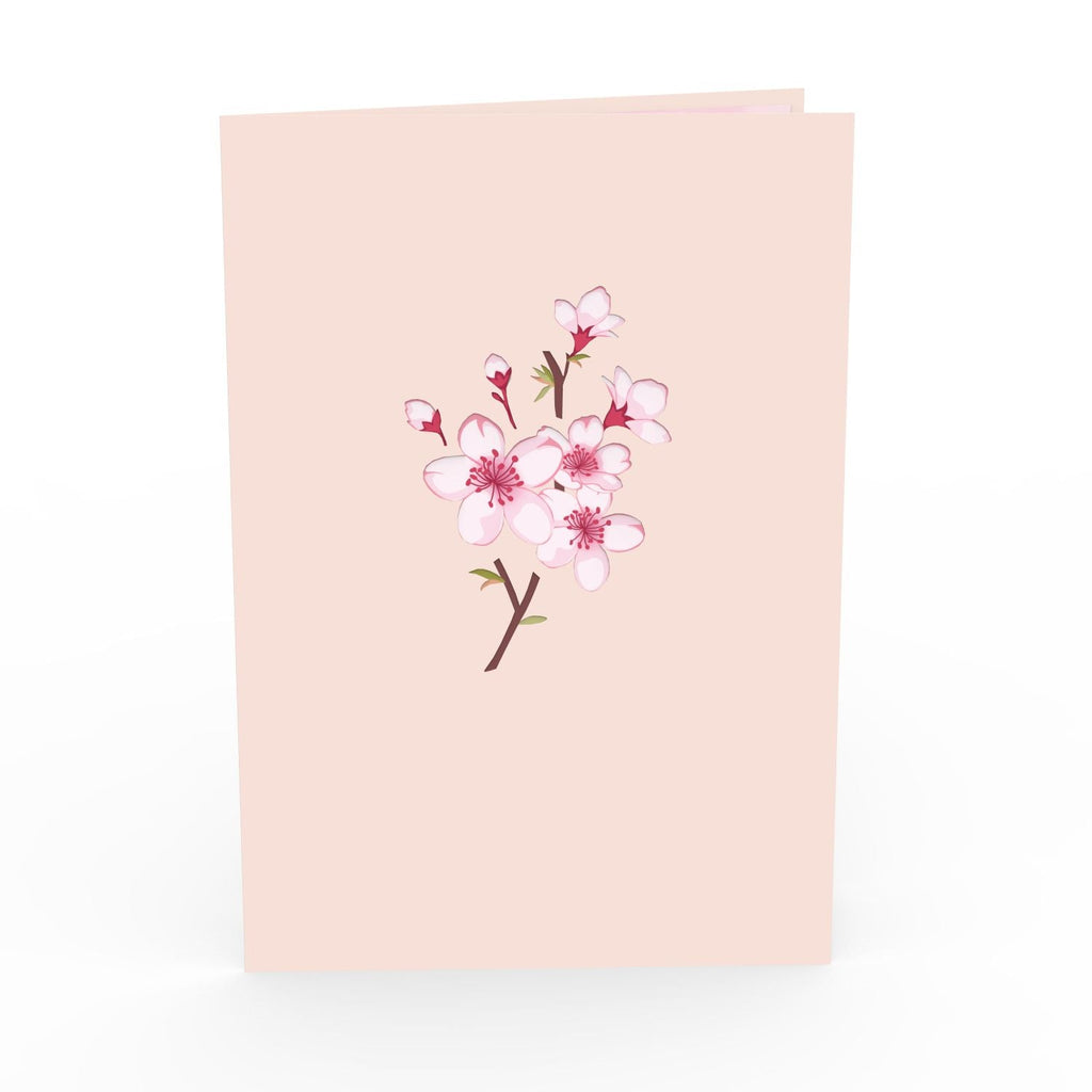 Diese Kirschblüten Pop-Up Karte vereint filigranes Design und außergewöhnliche Details. Beim Öffnen entfaltet sich ein prachtvoller Baum in der Mitte der Karte, dessen zarte, helle Blüten zum Greifen nah scheinen. Die innere Seite der Grußkarte erstrahlt in einem sanften Rosa, mit zarten Blütenblättern, die wie zufällig vom Baum herabgefallen sind und für eine verträumte Atmosphäre sorgen. Das Cover in elegantem Beige zeigt einen blühenden Zweig des Kirschbaums.