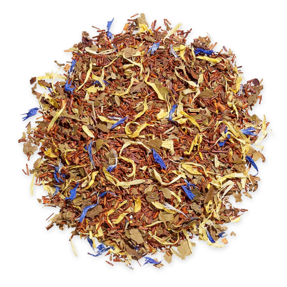 Herkunft: Südafrika Zutaten: Rooibos, Aromen, süße Brombeerblätter, Zitronenmelisse, Ringelblumen-, Kornblumenblüten