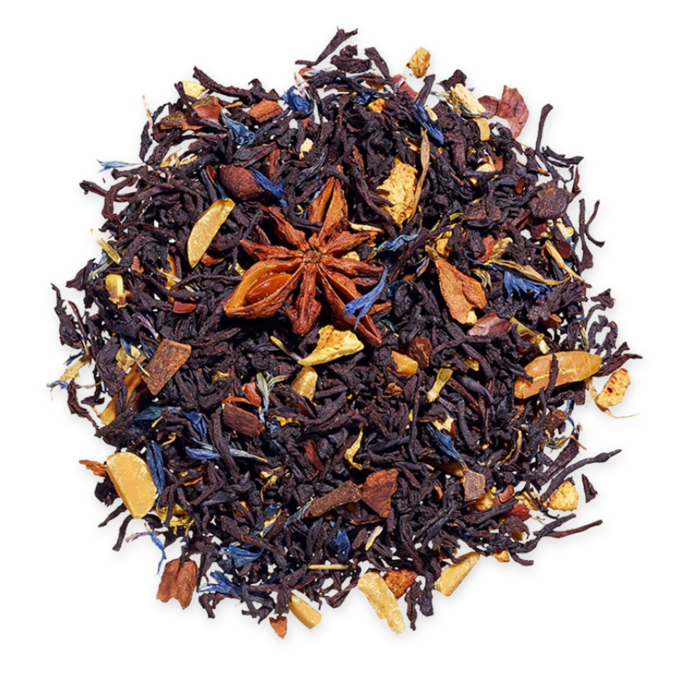 Herkunft: Ceylon (Sri Lanka) Blattgrad: OP Erntezeit: Herbst Zutaten: Schwarzer Tee (67%), Mandelstückchen, Kokosraspel, Zimtstückchen, Kakao-, Orangenschale, Aromen, Sternanis, Kornblumenblüten, Gewürznelke