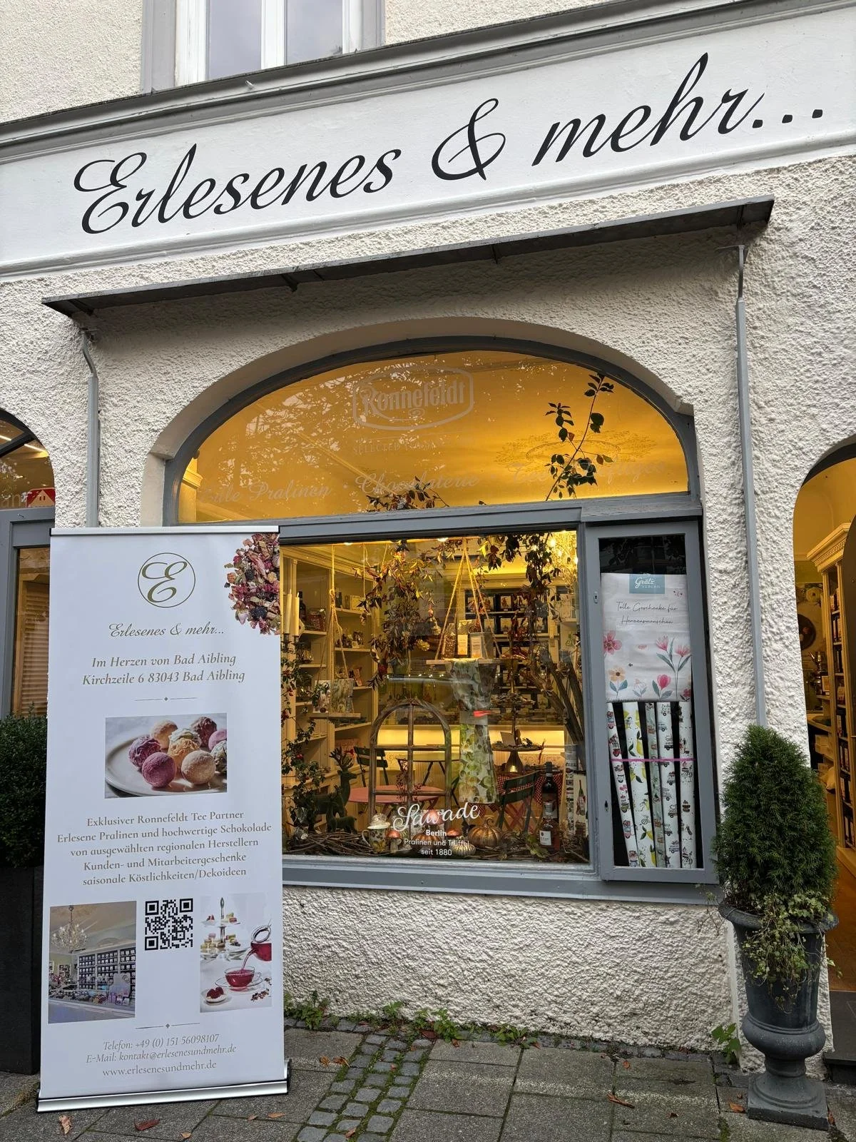 Willkommen im Genussladen Erlesenes & mehr… in Bad Aibling, Ihrem charmanten Fachgeschäft für exquisite Köstlichkeiten und stilvolle Geschenkideen!